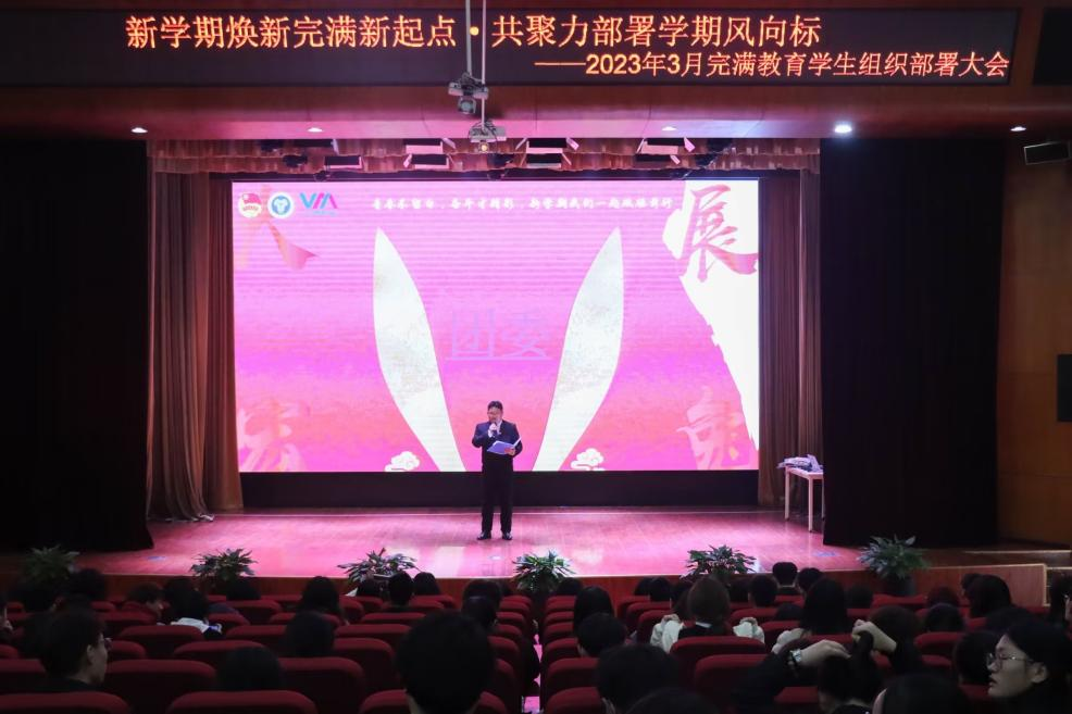 为更好地贯彻落实我校完满教育理念,助力完满教育学生工作发展,校级学生组织3月工作部署大会于3月2日中午12:10在下里巴人剧场举行,本次大会,来自校团委、校学生会、学生社团管理中心、青年志愿者联合会、学生体育联合会以及数字经济与信息管理学院的代表们紧扣主题“新学期焕新完满新起点,共聚力部署学期风向标”进行了工作总结与部署。