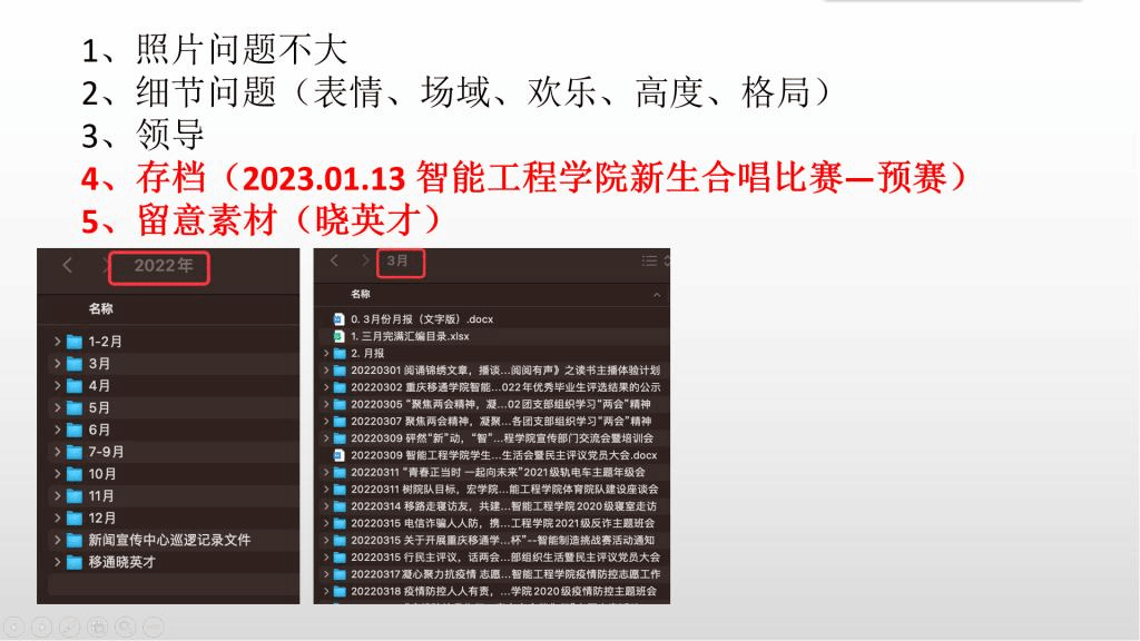 在会议中,李部长不仅对干事们在工作方面的努力付出表达了肯定与鼓励,也指出在工作过程中干事们需要重点注意的细节问题,如:在推文方面要注意排版适当、字号一致、图片相符等;在新闻稿方面要注意新闻的时效性以及文字的严谨性等;在活动拍照方面要注意构图、色彩、场地、人员等问题并要注意及时提交照片,做好存档工作。
