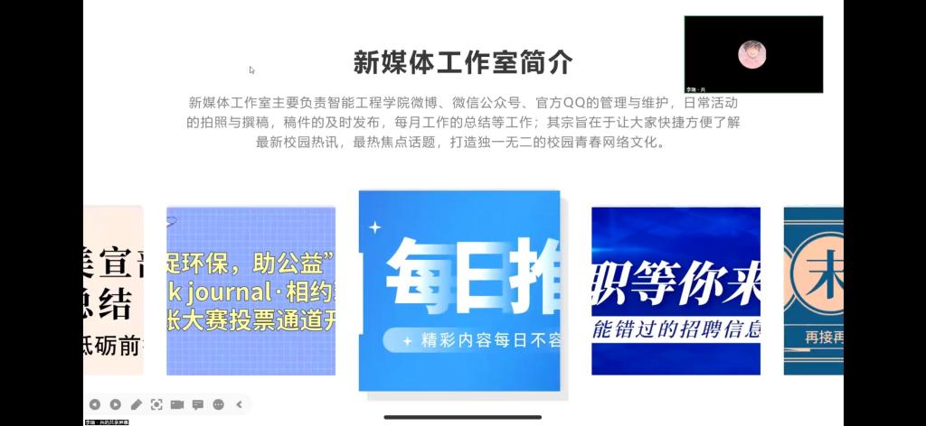 时光荏苒,白驹过隙,在一学期的工作过程中,智能工程学院新媒体工作室的成员们遇到了许多挑战,也有了诸多收获以及些许成长。新学期新目标,为了让新媒体工作室的成员们充满热情地迎接新一轮的挑战,新媒体工作室于2月22日21:00在腾讯会议开展线上新学期工作动员大会,新媒体工作室全体成员参与本次会议,并由李瑞兵部长主持本场会议。
