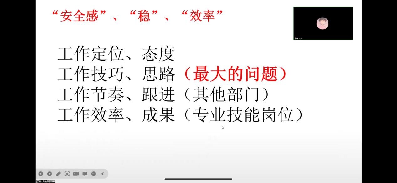 会议最后,李部长提到了部门主管学生书记对新媒体成员们提出的最重要的三点要求:“安全感”“效率”“稳”。“安全感”是希望成员们努力提高工作水平,熟练掌握工作技能,可以从容且保质保量地完成各项工作;“效率”是希望成员们合理利用时间,提高工作效率;“稳”是希望成员们可以沉着稳重,在工作中稳定发挥自己的最高水平。