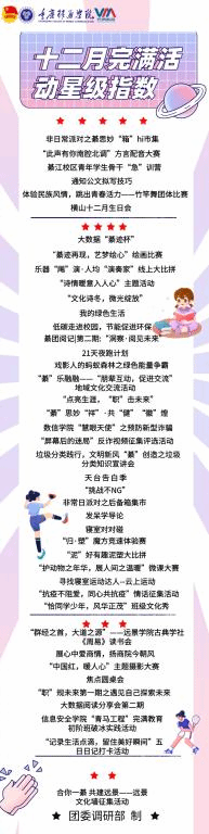 我校秉承着“信息产业商学院”总体办学定位,坚持以学生全面发展为中心,创新构建了“四位一体+双院制”人才培养模式,注重学生成长幸福感,培养学生积极向上的心态,组织者也为大家打造了许多趣味十足的活动,完满观察团始终坚持以全程跟踪模式去观察评估每一场活动,助力各位组织者为大家带来更多更优质的活动,接下来随我们一起去看看完满观察团12月行动轨迹。