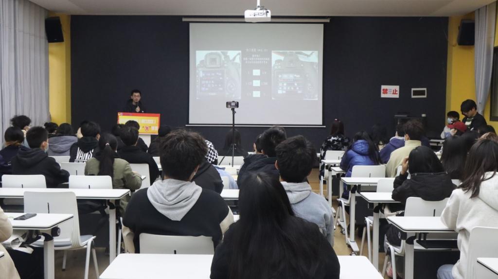 彭昇老师分为两部分内容对我们进行讲解。图片拍摄以及视频拍摄的小技巧,主要方向还是图片的拍摄。从单反拍摄及手机拍摄的基础理论、构图事宜、拍摄技巧、注意事项等方面进行了详细讲解,并具体分析了活动场景的拍摄方法。最后,他对今后如何提升同学们的摄影技术提出了宝贵的建议。培训会上既有专业知识又有个人经历,使现场气氛活跃起来。