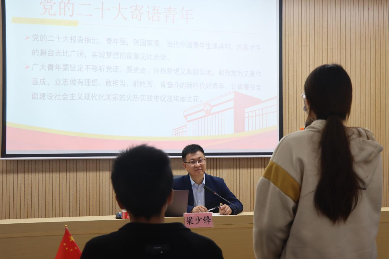 最后,梁少锋老师向全体青年学生骨干寄予众望的期望,祝福各位青年学生干部拥有美好的未来。正如习近平总书记所说:“青年一代不怕苦、不畏难、不惧牺牲,用臂膀扛起如山的责任,展现出青春激昂的风采,展现出中华民族的希望!”