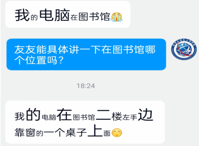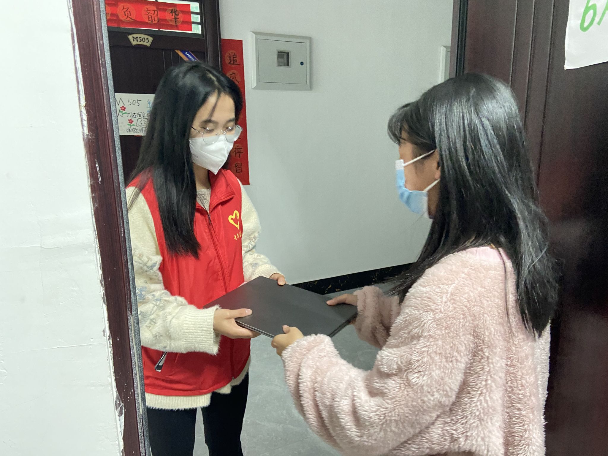 病毒的袭来,封校通知随之而来,有同学向小权权求助,这位同学想要拿回落在图书馆的电脑。通信小权权一听到这个消息,立即行动了起来,联系了志愿者将这位同学的电脑送到了他的寝室。