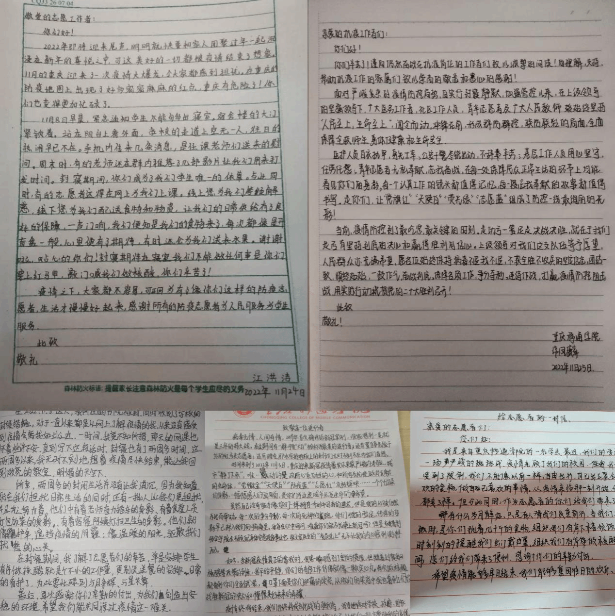 这次活动以书信和绘画的形式表达了同学们对热心志愿者和老师们的感激之情,展示了学子们的抗疫丝毫不懈怠的精神,激起了同学们对志愿者的尊重和崇敬,更加坚定了当代青年大学生的强烈爱国、爱校的信念,让我们共同贯彻经贸精神,做到坚定不移听党话、跟党走,听从学校的安排,意志做有理想、敢担当、能吃苦、肯奋斗的时代青年!