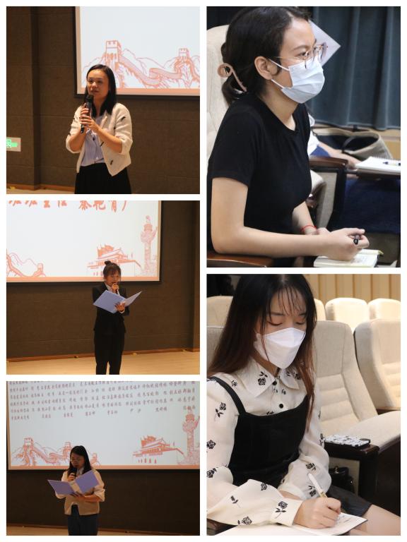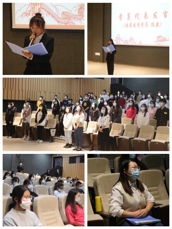 “用青春拥抱时代,用生命点燃未来”。大会伊始,全体学员及老师起立,庄严肃穆地奏唱团歌。曲毕,一幕幕往届青马工程精彩瞬间呈现眼前,无论是团结友爱的集体合照还是丰富多彩的实践活动,都令人敬佩而神往。往昔精彩瞬间充分彰显了青马学员应有的政治品格和精神风貌——积极传递正能量,与时代共进,与祖国共命运,与人民共发展。曾国藩先生曾说:“自立立人,自达达人,莫问收获,但问耕耘。”陈燕学姐很好地诠释了这句话。学姐作为往届优秀学员带着自己在青马工程一路的感悟与收获前来表达自己的祝贺与期待,也对新学员们未来的学习过程提出一定的建议。期待青马的新学员们成长成陈燕学姐发言中的“有理想、善学习、讲道德、要自立、勇奋斗”的青年马克思主义者。