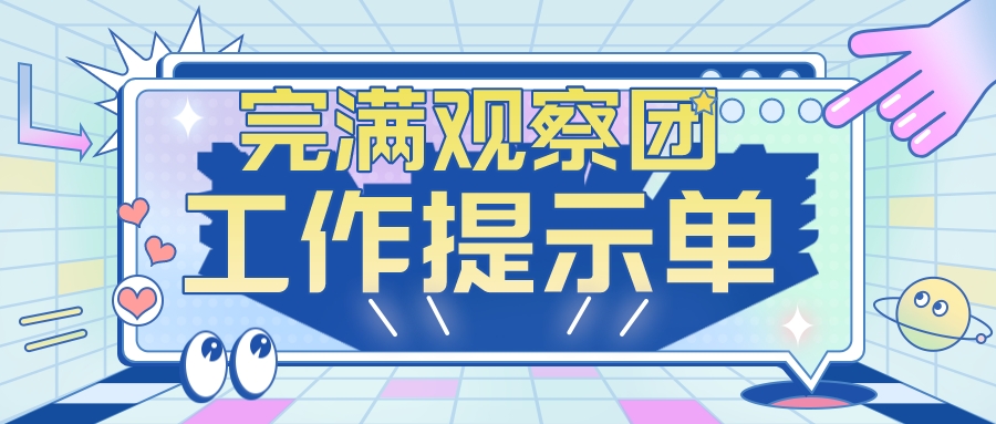 针对这些疑惑,团委调研部将为你全方位解读什么是完满观察团,本学年相关工作的开展措施,帮助你走入我们的世界,看完这篇攻略即使零基础也可以上手完满观察团工作,綦观完满,我们等你行动~