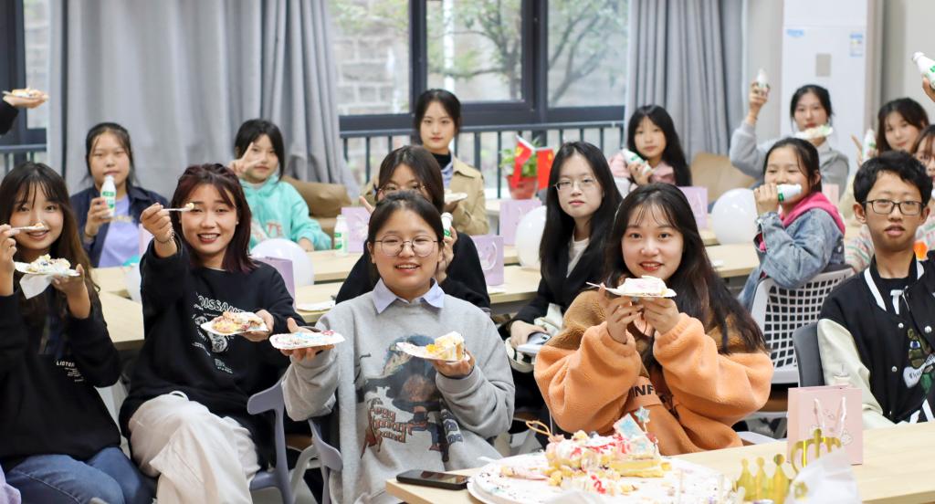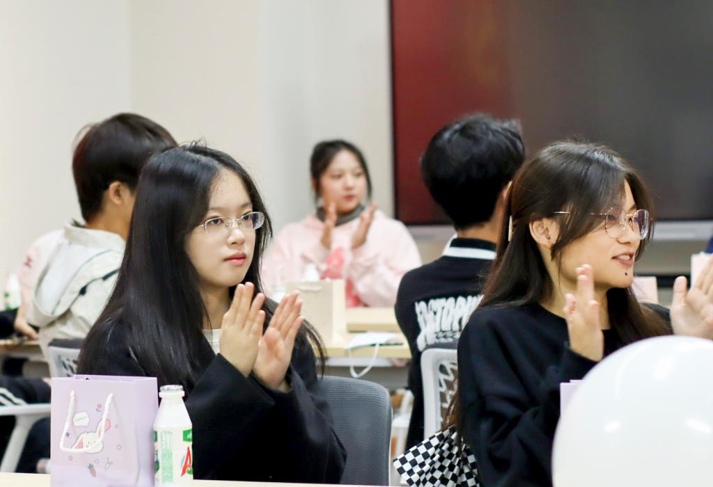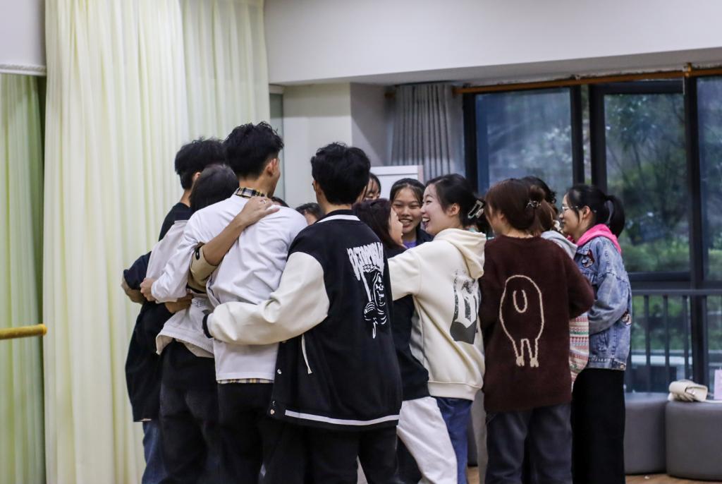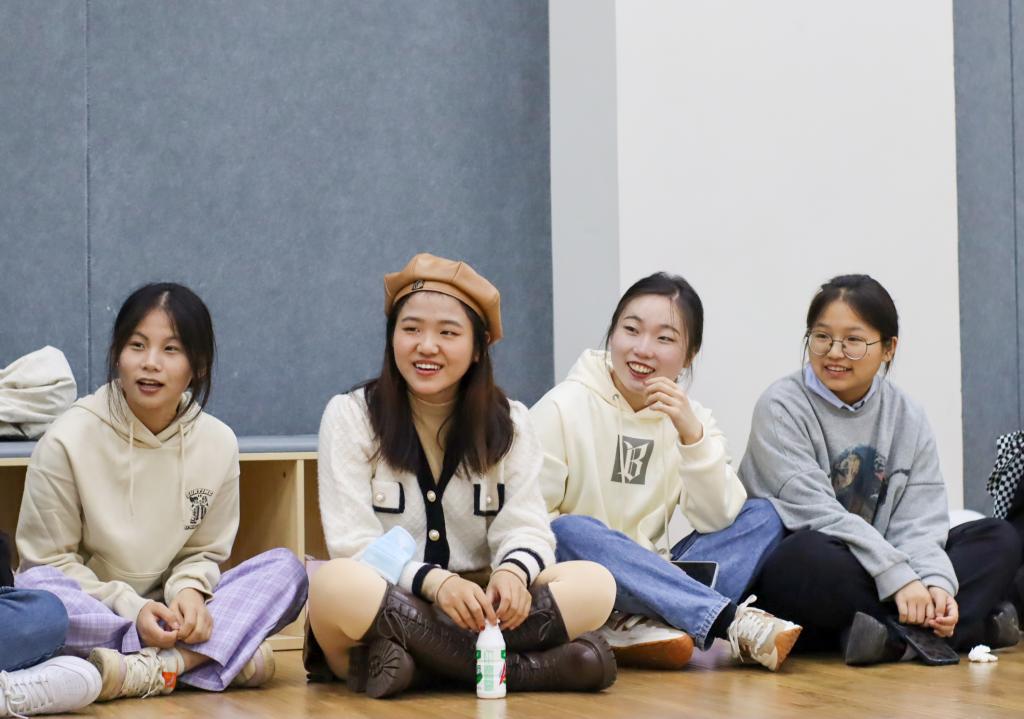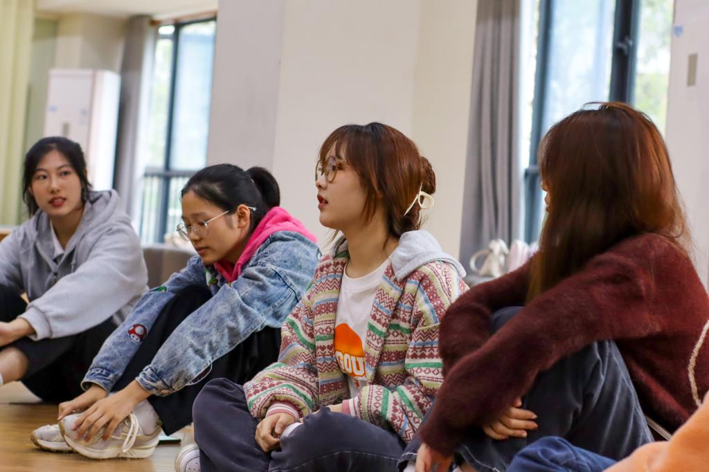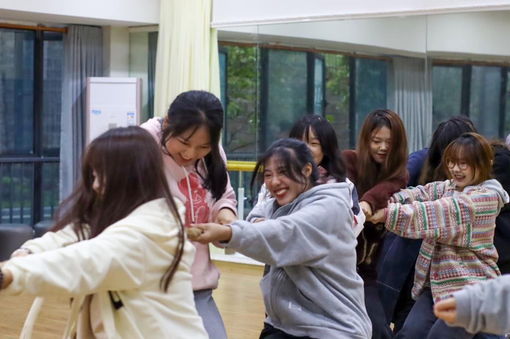 第二个小游戏是“击鼓传花”。全部成员围圈席地而坐,播放音乐传道具,当音乐暂停,球传到谁手上,就要接受真心话大冒险。在紧张的音乐中,伙伴们距离了拉近,欢声笑语一片。