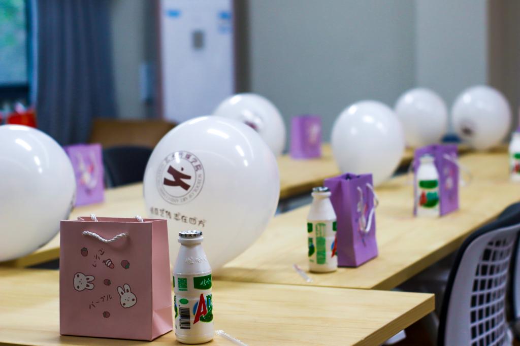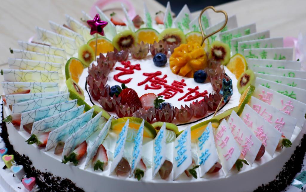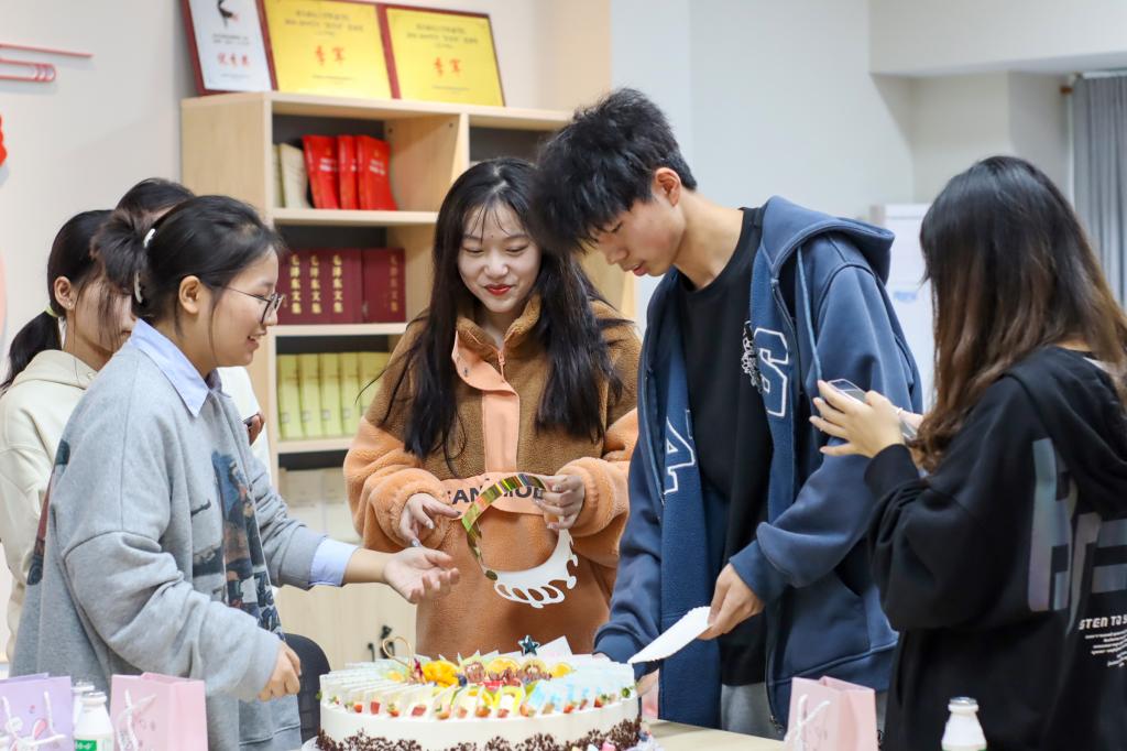 第二个环节是分蛋糕,蛋糕上面摆放着“艺传青协”四个大字,写着干事、干部、主席以及指导老师的姓名,表示在老师以及主席的指导下,三个部门紧密联系,艺术传媒学院青年志愿者协会会更加美丽。