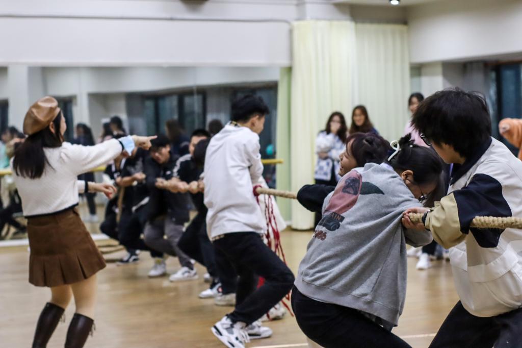 第三个游戏是趣味拔河比赛,大家摩拳擦掌,紧握住粗绳,随着一声令下,每个人使劲把绳子往后拉。比赛氛围一度高涨,虽然大家都很累,脸上却一直洋溢着微笑。
