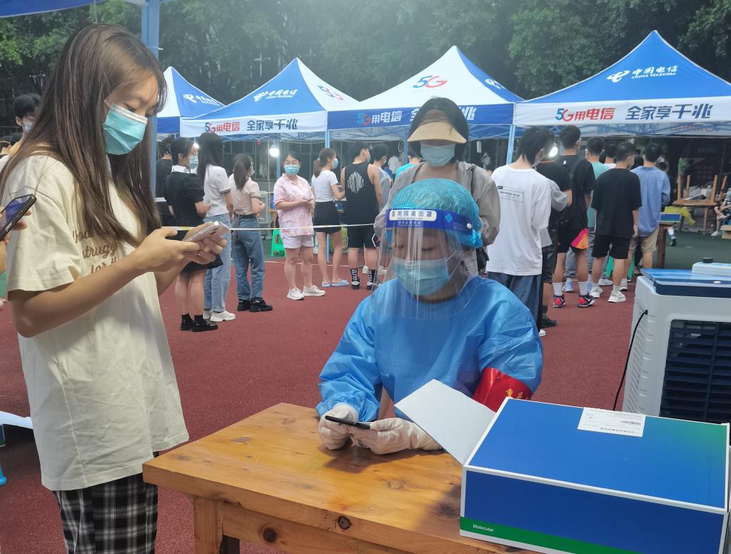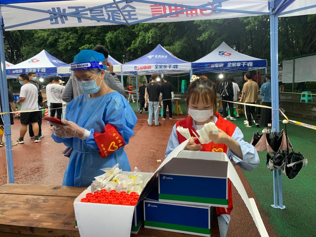 “我是负责协助医护人员登记扫码和发放检测拭子的,那天还下着蒙蒙细雨,风有一点大,冷飕飕的,但是每一位登记的同学都会在登记之后微道一声谢谢,虽然大家都带着口罩,但是眉眼间的笑意是藏不住的,那个时候我也就不觉得冷了,很暖。”学生党支部成员赵曾荣同志已经多次参与校园疫情防控志愿服务活动,深感在点滴小事也能收获感动和快乐。她表示,从大家的微笑中可以看出,全体师生员工都希望通过自己的自律来守护校园的安全,共同践行“疫情就是命令,防控就是责任”的责任担当。