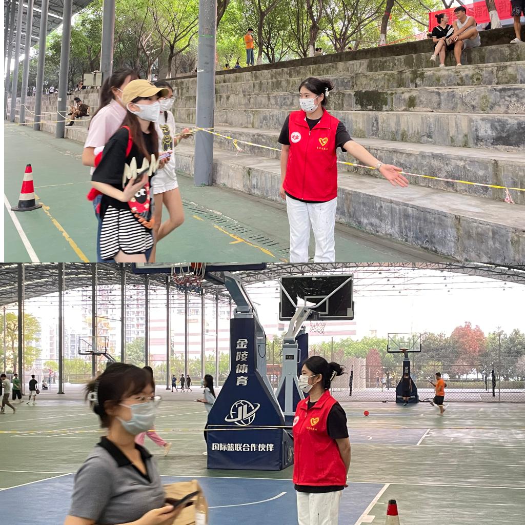 “同学你好,请戴好口罩,准备好二维码,依次有序进行检测。”在北校区篮球场入口,两位志愿者正在叮嘱进场的同学们相关注意事项,引导同学们有序排队。