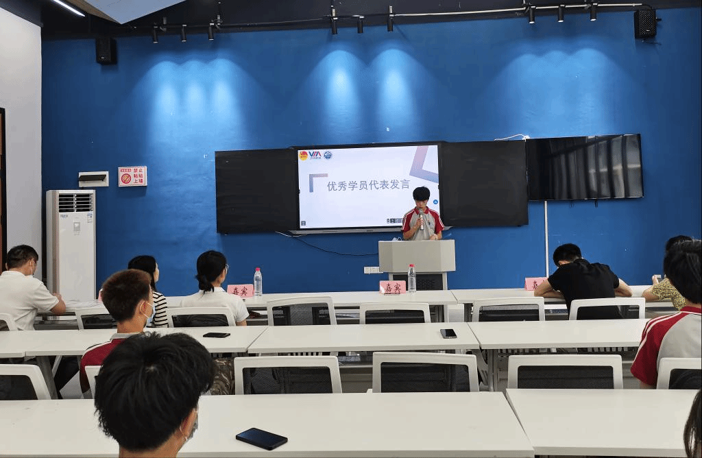 为回顾总结青马工程课程内容,提升青马课程学员政治觉悟和思想水平,教育引导学生完满发展,6月10日下午14时30分,大数据与计算机科学学院2021-2022学年青马工程完满教育骨干培训初阶班结业仪式在綦河书院2号楼智慧教室举行。学工办主任阙小梅老师、辅导员蔡娜、谢沅红、邹健、李进老师,以及第1期青马工程全体学员参加仪式。