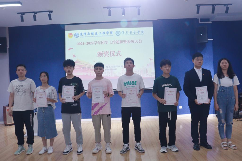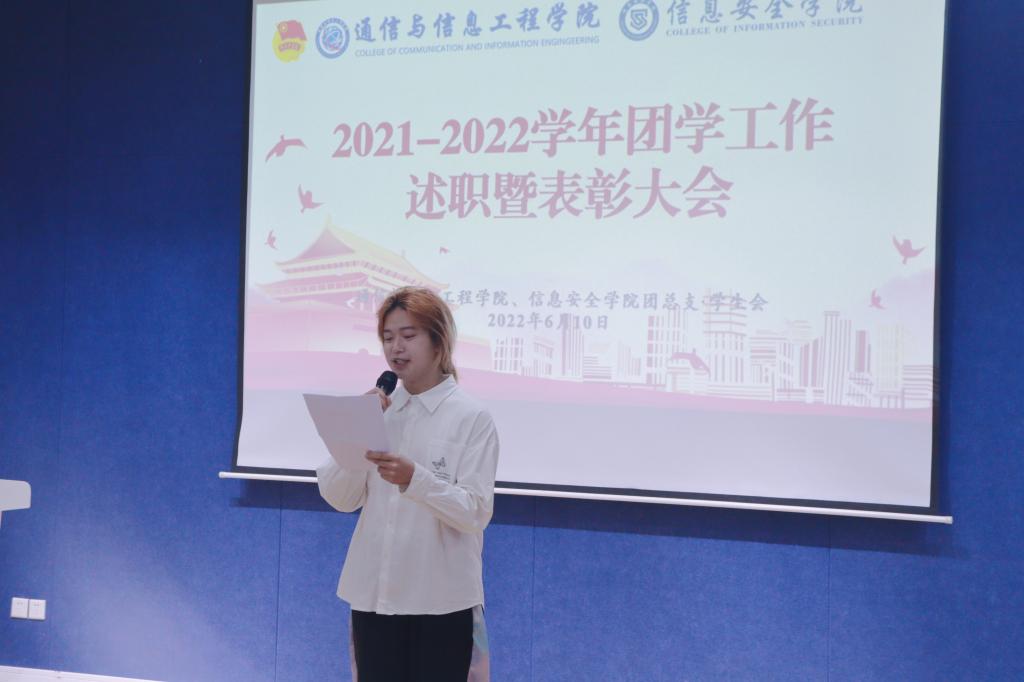 述职结束后,信息安全学院王辅崇老师宣读了2021-2022学年团学工作优秀个人的表彰文件,并号召全体团学干部以此次表彰为起点,重整行装再出发,不断完满青春,开创灿烂未来。