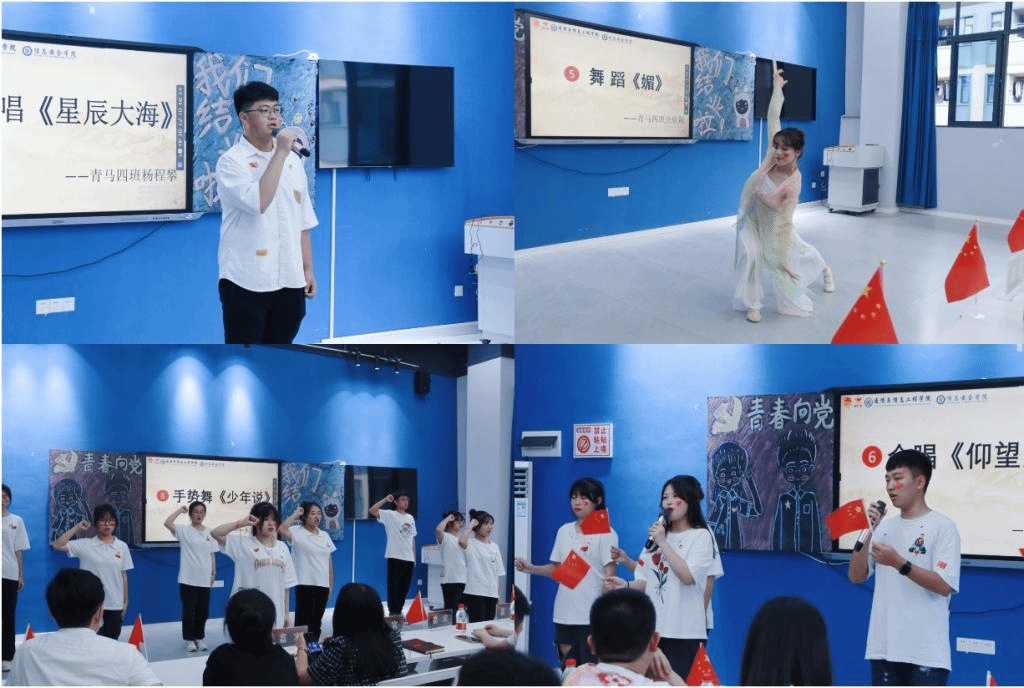 优雅与激扬并重,青春与动感齐行,青马四班的学员杨程攀同学,一首《星辰大海》充满活力,成功将现场的气氛带向沸点;而同为青马四班的余欣颖同学一曲舞蹈《媚》则尽显优美,使人沉浸其中;手势舞《少年说》节奏欢快,尽显少年的自信与风采;而青马七班学员的歌曲《仰望星空》则唤醒了同学们对未来的期盼与拼搏热血;最后,初阶班学员准备的诗朗诵《祖国,或以梦为马》声音高亢、气势雄伟,将青马学员的优秀、沉着与大气展现得淋漓尽致。各类节目精彩纷呈、奔放的舞蹈,潮流的气息,青春的脚步,跳动的音符,诠释着他们个性、开朗、奔放、热情的青春面貌。