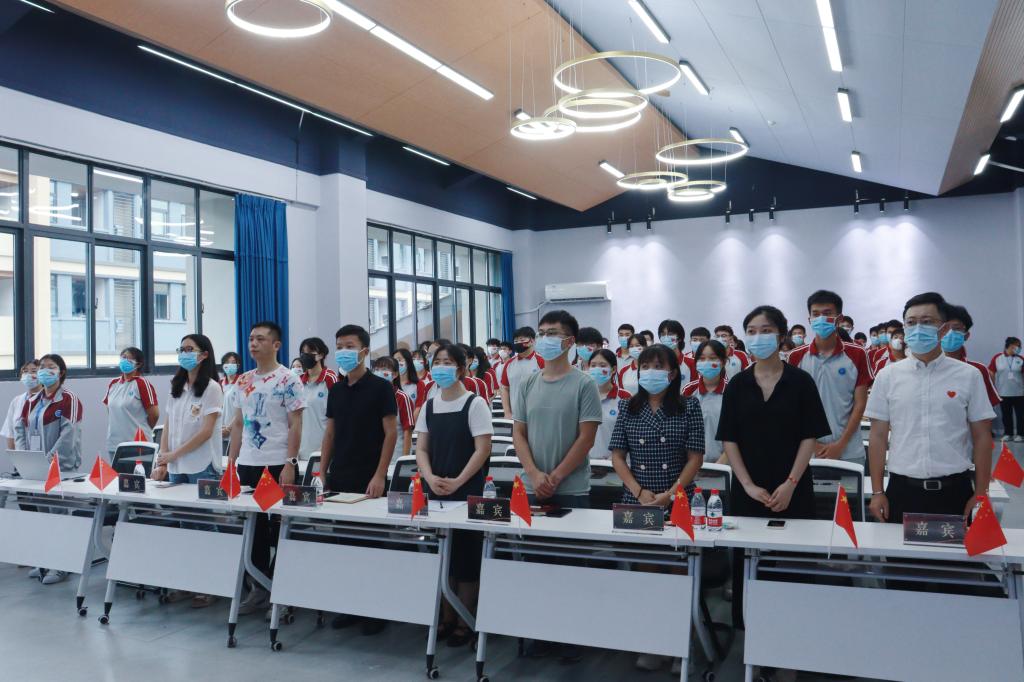 仪式伊始,在主持人的引导下,本次结业仪式的第一个环节是齐唱共青团团歌,会场里,各老师与同学们整齐端正的站立着,齐唱共青团歌,表达对团组织热爱以及承担新时代青年建设祖国大任的信心。