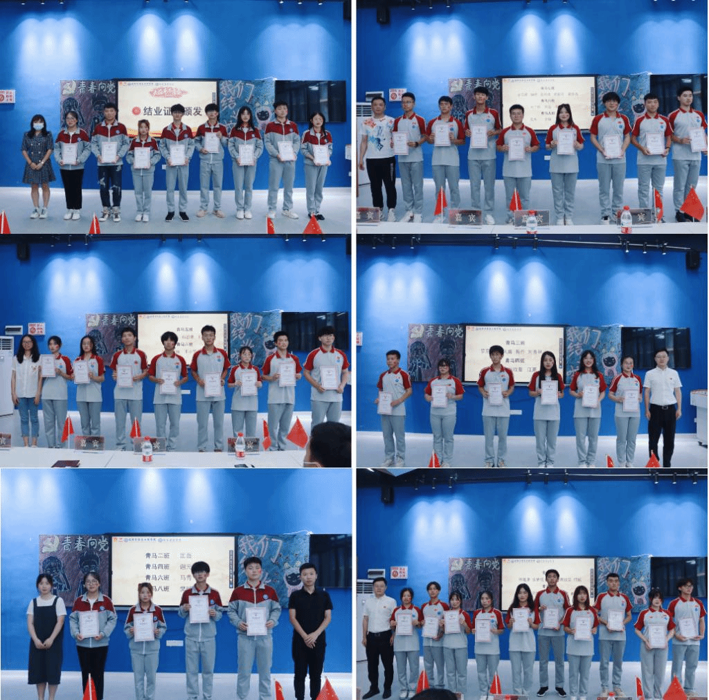 生命中最大的奖励并不是财富的积累,而是拼搏中带来的精神上的满足。本次青马结业仪式走向了末尾,在各位嘉宾老师的见证下,各青马工程班长领取了学员的结业证书,接下来由主持人宣读了青马各班级的优秀学员的名单,并由现场的嘉宾老师为他们颁发荣誉证书,最后,青马四班班长谢元广、优秀学员代表范振红上台发言,回顾了这一阶段的学习历程以及表达了对未来学习历程的展望,而龙凤老师则为同学们送出了饱含祝福的寄语,表示出希望通信与信安学子可以在优秀的道路上愈行愈远的殷切期盼。