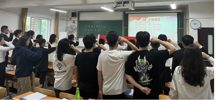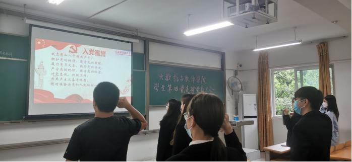 随后由党支部组织委员报告对今天48名预备党员同志的会前审查情况,党支部组织委员李婷、吴素虹等同志表示经过前期审查48名预备党员皆符合转为中共党员的要求。发言结束后主持人提出下一项议程无记名投票表决,宣布表决要求后,全体正式党员秉承公平公正的原则进行投票表决,其中两名同志负责监票和计票,并由汤曲同志当场宣布投票结果。此环节顺利进行,48名预备党员的投票表决结果一致通过。最后在党员同志的带领下全体参会同志重温入党誓词,以增强党员的责任感和使命感,提升组织的凝聚力、向心力和战斗力。