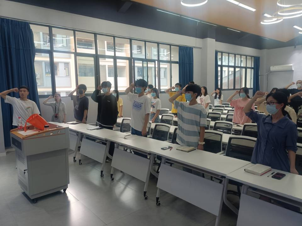 习近平总书记在庆祝中国共产主义青年团成立100周年大会上的讲话中提到:人生万事须自为,跬步江山即寥廓。追求进步,是青年最宝贵的特质,也是党和人民最殷切的希望。千百年来,青春力量都是无穷的,始终都是推动中华民族屹立世界民族之林的磅礴力量。“青年者,国家之魂。请党放心,强国有我。”唐孝庆副教授的讲课,让在做学员激情澎湃,感同身受,纷纷表示要用青春的创新、用青春的创造在更广阔舞台实现自我,为中华民族伟大复兴奉献青春力量。同时,在唐老师带领下,青马学员们共同举起右手,再次喊想入团的青春誓词,慷锵有力、斩钉截铁,声声宏亮喊出了青年学生的铮铮誓言和决心。