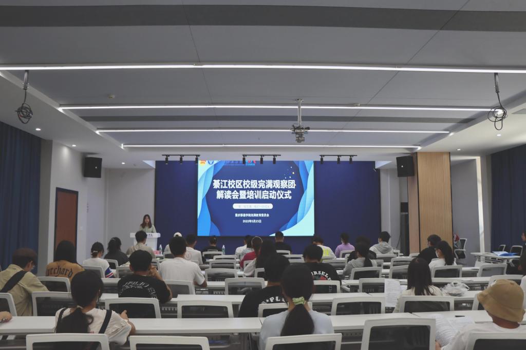 2021-2022学年,綦江校区制作电子手册和纸质工作记录册,创新性采用“1+N完满观察团”:即率先成立1支校级完满观察团,辐射带动学院、书院完满观察团建设,全新模式助推完满教育“新高度”;开展专题培训:1次整体工作培训、5场专项观察组具体培训,助力完满观察团专业提升;为促进完满活动良性发展,完满观察团以“持续关注”、“全程跟踪”为主要工作模式,对于校园完满教育活动进行“具象性评价”、“好评指数”,两件硬性“装备”协助观察团同步进行成果的展示,搭建组织者与参与者的桥梁,令完满教育充满温度。