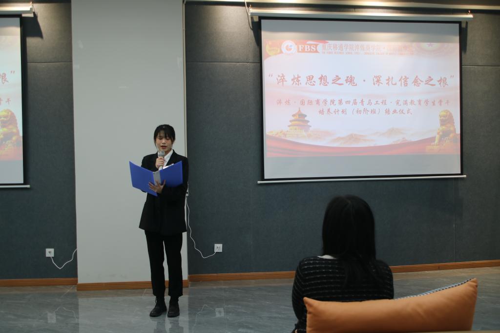 “红日初升,其道大光;河出伏流,一泻汪洋”。为检验淬炼·国际商学院第四届青马工程·完满教育学生骨干培养计划初阶班学员的学习成果,表彰和鼓励其中有突出表现的学员代表,2022年5月18日下午14:00的南湖书院声影活动室,淬炼·国际商学院团总支开展了“淬炼思想之魂·深扎信念之根”——淬炼·国际商学院第四届青马工程·完满教育学生骨干培养计划(初阶班)结业仪式。