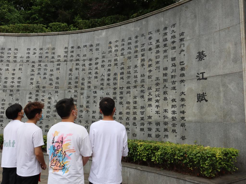 包揽完綦江的历史风貌后,大家在田海燕老师的带领下沿着马路边,一同前往綦江烈士陵园。旅途中,红色的旗子风中飘扬,大家欢声笑语、结伴而行,形成了一道靓丽的红色风景线。