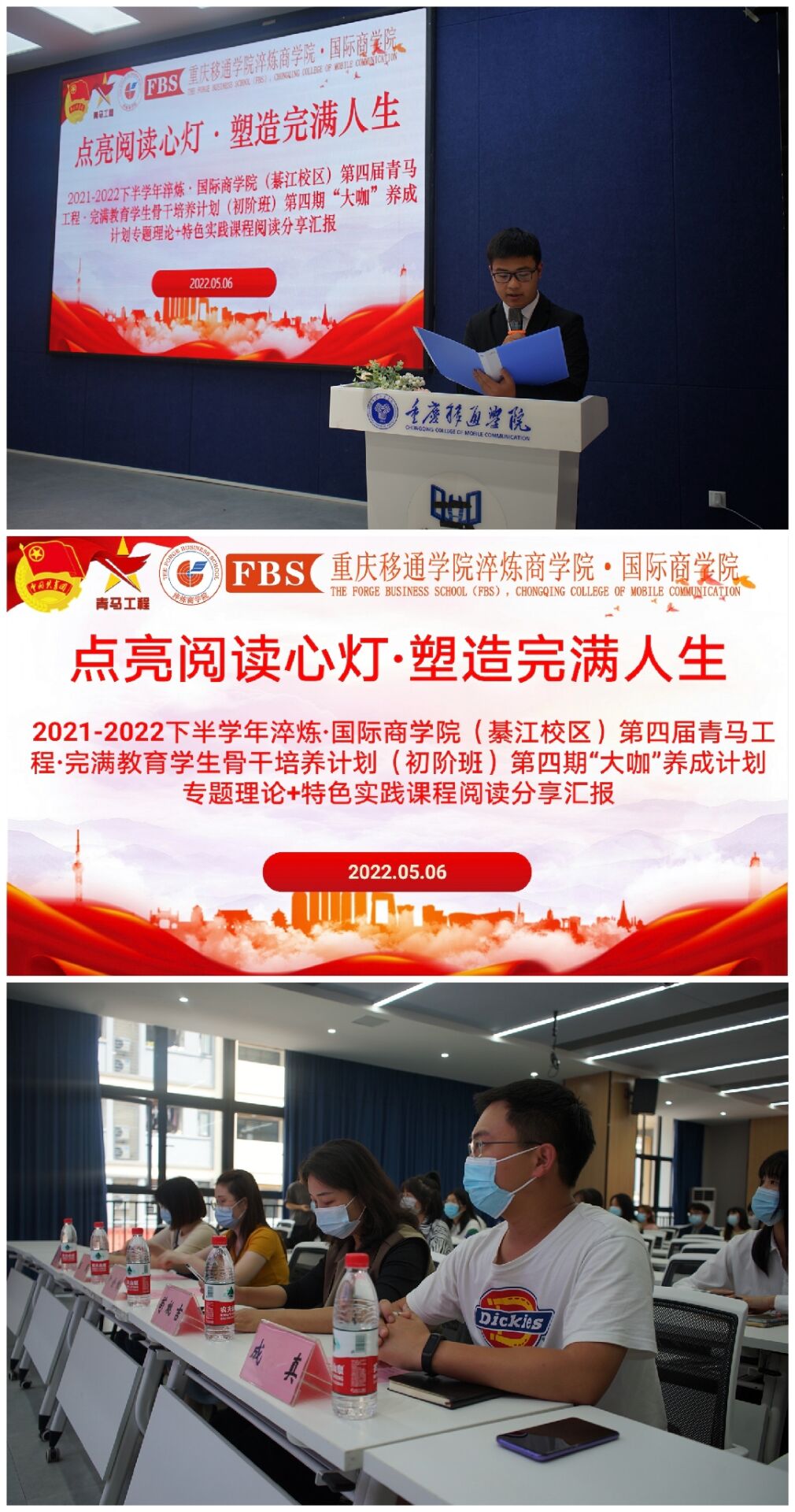 鸟欲高飞先振翅,人求上进先读书。为响应学校信息产业“大咖”传记阅读计划,落实专业知识及信息管理知识为一体的复合型人才培养理念,激发学员们的读书热情,助力学生商业思维的锻炼,在“大咖”传记中获得启迪,淬炼·国际商学院(綦江校区)于5月6日14:30在QH2222观涛·多功能活动室开展了以“点亮阅读心灯·塑造完满人生”为主题的青马工程(初阶班)第四期专题理论+特色实践课程阅读分享汇报活动。