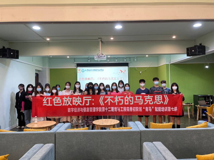 百年巨变,盛世华章。新中国全面建成小康社会,经济、科技、综合国力和人民生活水平跃上新台阶,稳居世界第二大经济体,离不开与马克思主义同中国具体实践相结合的正确道路。为深入开展青马工程学习教育,传承红色基因,弘扬爱国精神,提高青马学员思想素养,进一步加深对马克思主义精神内涵及先进性的了解,我院于4月22日19:00在双栀书院多功能影音室举办第十二期青马工程完骨初阶班“青马”赋能培训第七讲,组织全体学员观看红色电影《不朽的马克思》。