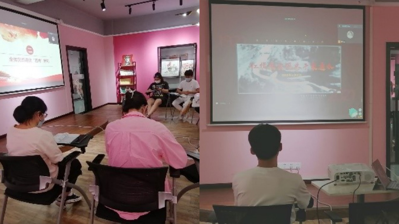 此次分享会共分为四个部分,第一部分是观看视频《建党百年第二节1950-2021》。该视频记录了从1950年朝鲜战争爆发至2021年中国共产党成立一百周年以来中国发生的重大事件,中国共产党一步步走出的历史脉络也走进我们每一位党员的眼里、心里、思想里。