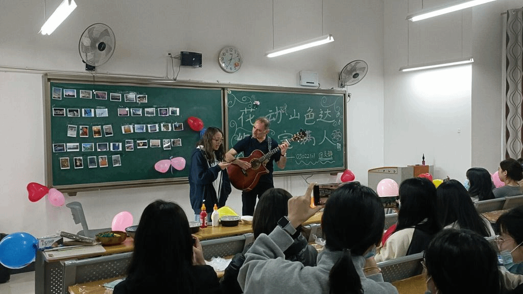 “声乐达人”和“开门大吉”中,同学们积极主动参与猜曲目,一展歌喉,有余音绕梁,有声嘶力竭,也有娓娓动听,比如那次活动有幸邀请到外教Clive,他用吉他为同学们伴奏,一调一乐,回荡在同学们耳边。“Sushi便当maker”,大家自行结对,一起制作寿司便当,共同享受美食,大家制作出来的寿司芳香四溢,令人垂涎欲滴。