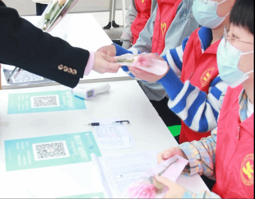 3月25日上午八点,21122107支部的同学们在B区操场旁置了自助交换点。粉色的海报、绿色的便利贴、嫣红的玫瑰、一捧捧满天星堆满桌板。小小的自助点饱含的是同学们对“疫情早日结束,静候春暖花开”的期盼。一个又一个身影出现我们摆满鲜花的桌旁,一张又张便利贴书写着同学们珍藏已久的情话。他们与21122107支部交换的是玫瑰,是私有的浪漫,是我们美好青春的希望,是“山河无恙、人间皆安”的祝福。像汪曾祺先生写的那样;你一定要爱着点什么,恰似草木对光阴的钟情。