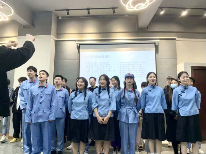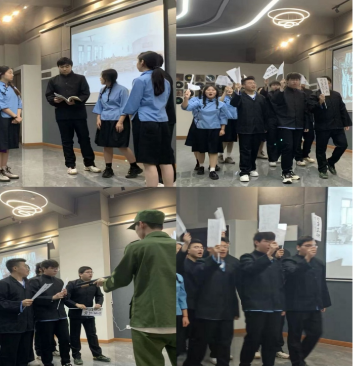 在本次活动的筹备阶段,确定剧本角色的人选时,同学们的踊跃参加出乎了我们的意料。每一位参与者都十分认真的去体味当时国家社会动荡不安的历史背景,去演绎青年们不畏艰险,誓死为国的爱国精神,大家在一起对词,排练,经过一次又一次练习,只求最终能呈现出最佳的舞台效果,或许有过争吵,有过歧义,但都在尝试去磨合,这个时候同学们真的凝聚为一根绳就如同以前团结一心抵御外敌的人们。