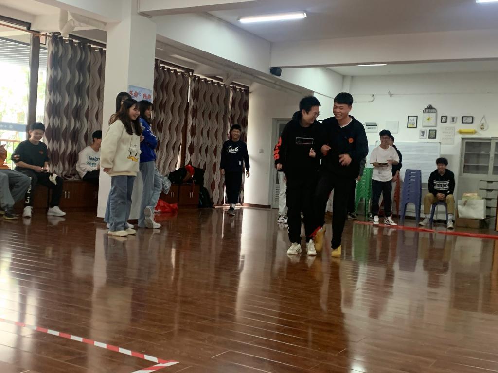 这个项目分为两人组、三人组、五人组,队友之间搭着肩一起吼着一、二、一、二这个项目不仅考验队伍是否能团结作战,还能在比赛过程中,队友互相磨合,提高队伍凝聚力,从而提高班级凝聚力。