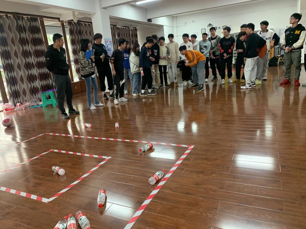 每一个人都卯足了劲,有的人轻轻的扔矿泉水瓶,有些瓶子能滚进去,可有些瓶子滚不了多远;有的人用力的扔矿泉水瓶,试图将其他小组的矿泉水瓶撞出去,最后,对不队最后在智慧和运气的加持下,获得本次比赛的获胜。