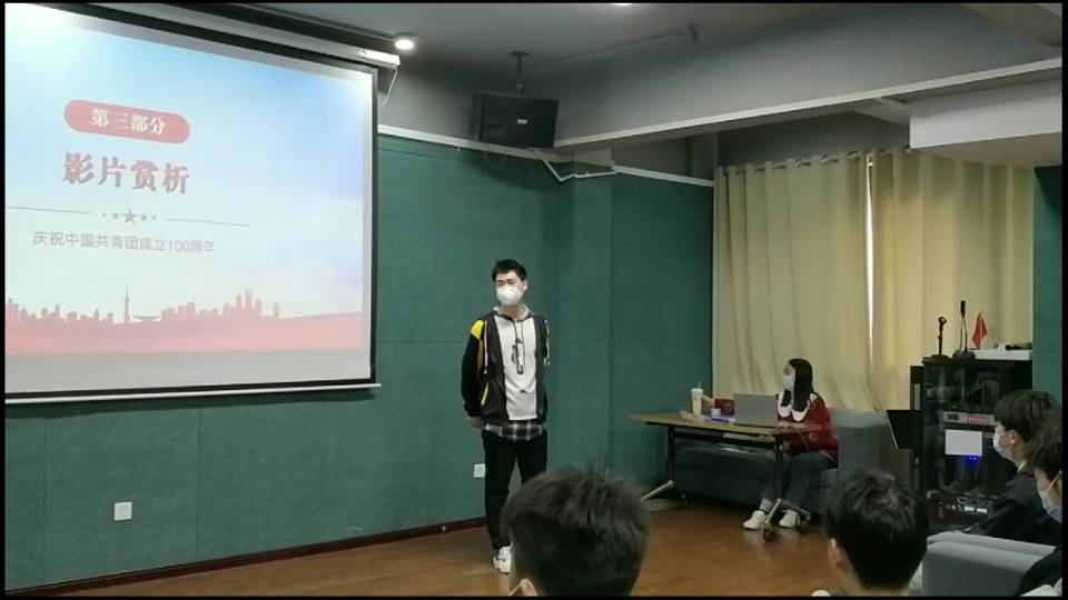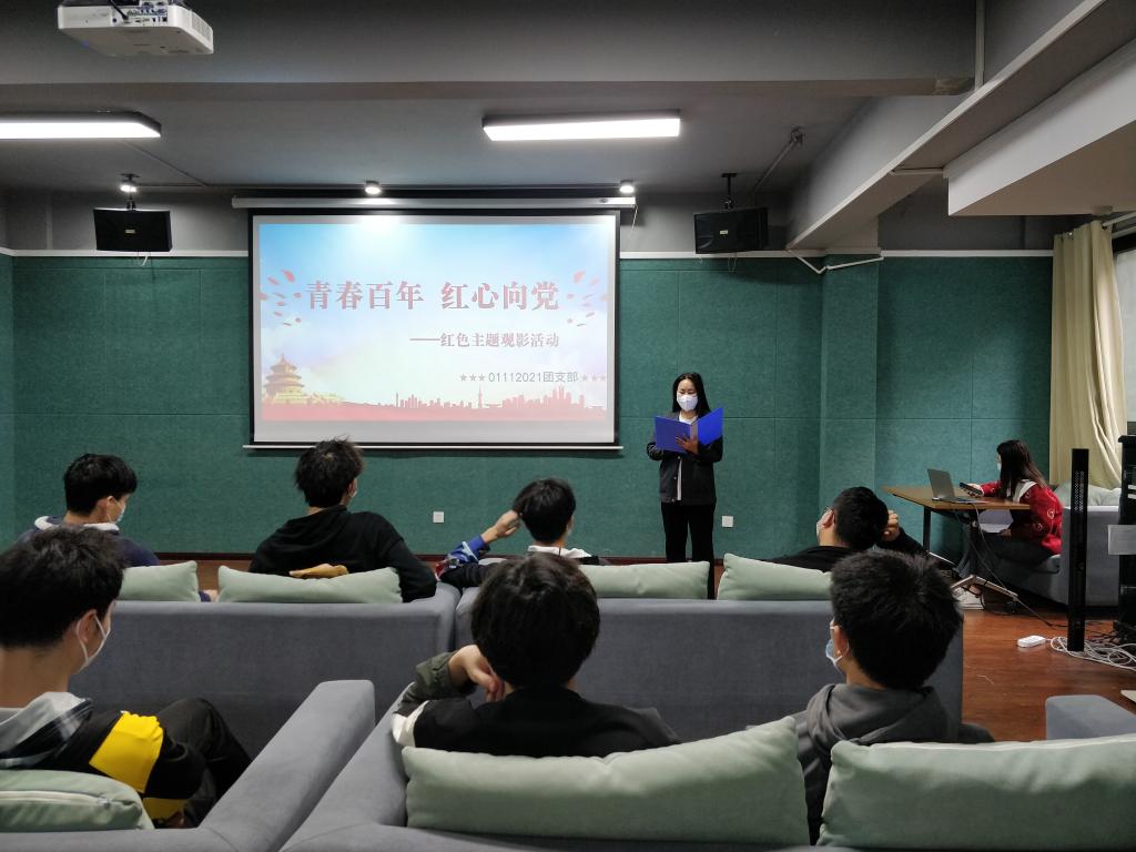 这春天的气温乍暖还寒,春意料峭,正值防疫进行时,2022年03月27日,01112021团支部用影片牢记历史、并传递着热血。2022年是中国共产主义青年团成立100周年,在这样的背景下,为带领支部成员弘扬“爱国、进步、民主、科学”的五四精神,为进一步厚植同学们的爱国情怀,歌颂革命中的英雄人物,01112021团支部在爱莲影音活动室开展一次“红色”观影活动。