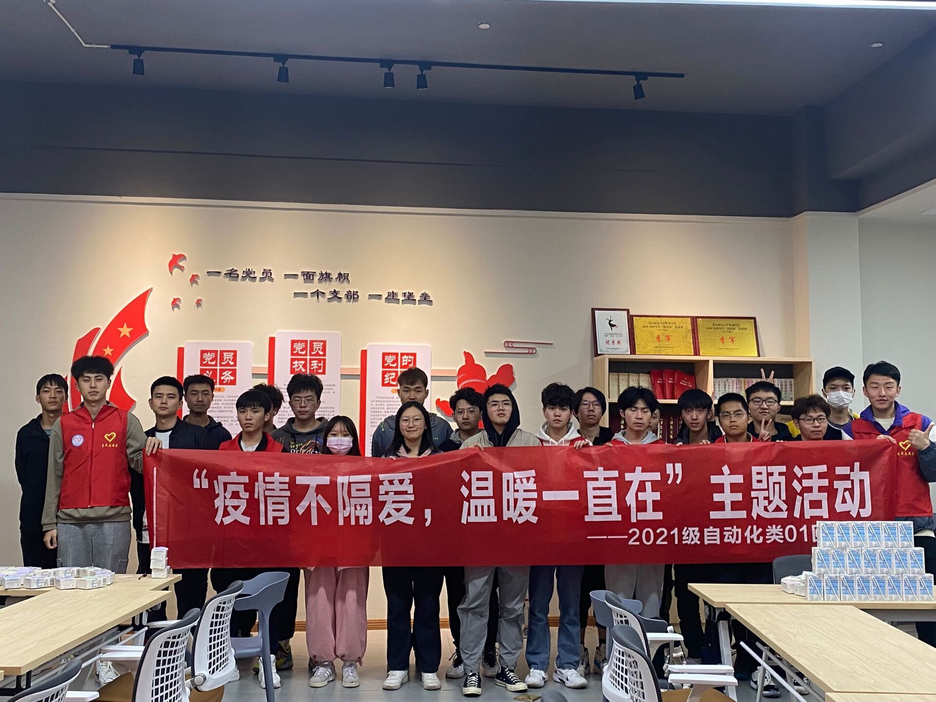 凛冬散尽,温暖降临,为给在此次疫情封校中默默奉献的工作人员送去温暖,传递爱心,本着以增强同学们的责任感,提高志愿服务精神,培养同学们的交流能力,更好地促进全校“完满教育”工作的顺利开展为基础。重庆移通学院智能工程学院自动化类01团支部于2022年3月30日下午14时在校园开展“疫情不隔爱,温暖一直在”主题活动。2021级智能工程学院自动化类01团支部全体成员参加了本次活动。