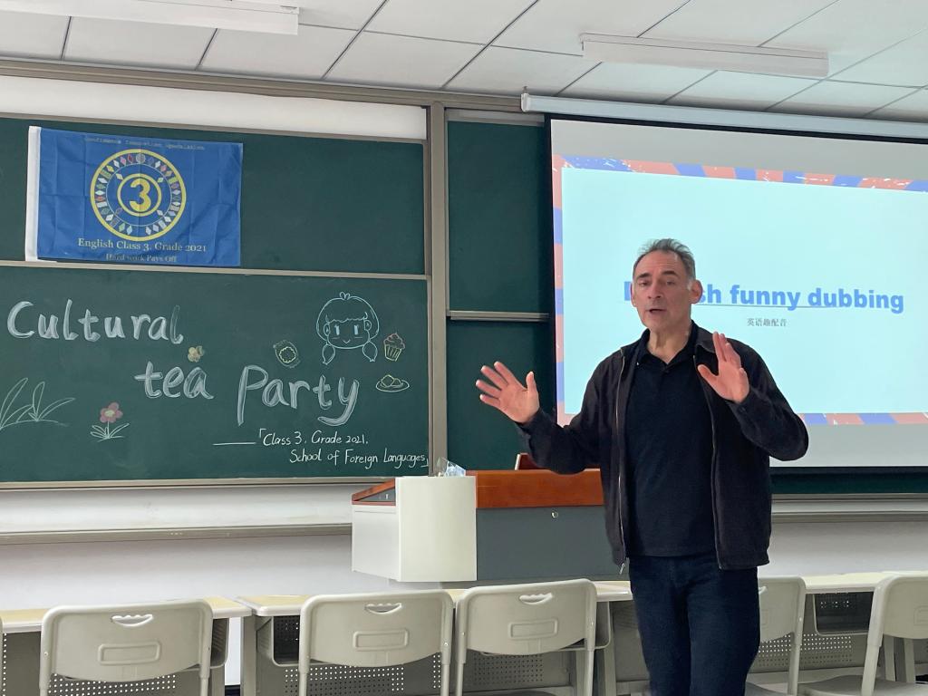 活动的第一个环节,幽默风趣的外教Clive分享关于他故乡——英国的文化。Clive的讲述勾起同学们对英国的兴趣,对Clive口中那个优雅恬静的国家充满好奇,增强同学们的学习热情和对英文的兴趣,同时也告诉着大家“语言无国界,文化可相容”。