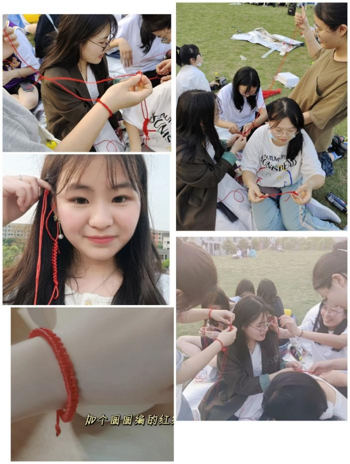 活动伊始,同学领取到一条颜色鲜红的红绳,远远望去好似看见来红军将士们为了我们的新中国成立在抛头颅、洒热血,一条细小的红绳却散发着不可诉说的魔力,默默的激发着每一位同学的赤子之心,一条红绳慢慢的在同学们手中逐渐变成一个个中国结,同学编织的中国结是如意结寓意着称心如意、万事如意,大大小小的中国结在一起仿佛一条红色的长廊,在同学们手中熠熠发光。