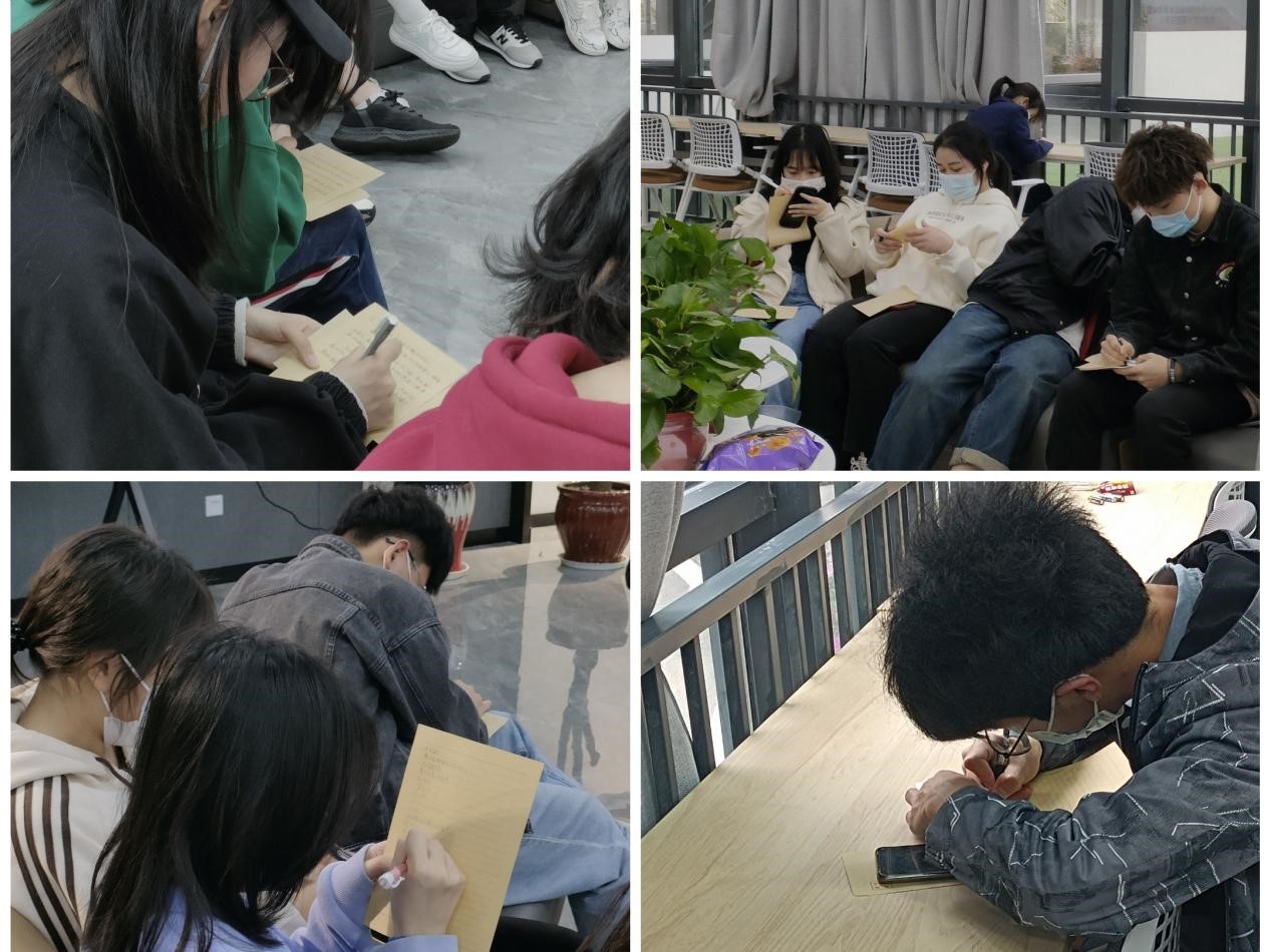 很开心参加这样的一次完超活动,感受到了大家团结协作的精神,以及共同抗疫的那份信心。此次活动中大家携手完成了几个小游戏,增强了班级凝聚力,并且每个同学都写下了一封信来寄予大二的自己,感受到了大家对于未来的希冀。