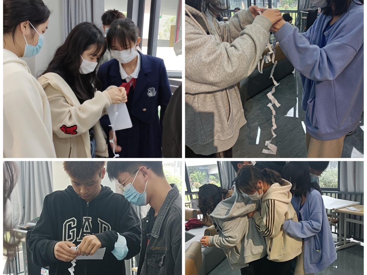 活力是在行为上说做就做不会畏首畏尾的执行力,是对身边事物细致入微的好奇心和洞察力。活动开场,“撕纸成圈”游戏带动起现场气氛,成员以团队合作的形式思考最优方法,考验班级成员配合度。采用分组制进行比拼,主持人宣读完游戏规则后,各小组迅速进入状态,以组内接力的方式争先恐后地行动起来。通过趣味游戏调动班级成员积极性,活跃现场氛围,自然拉近彼此距离。