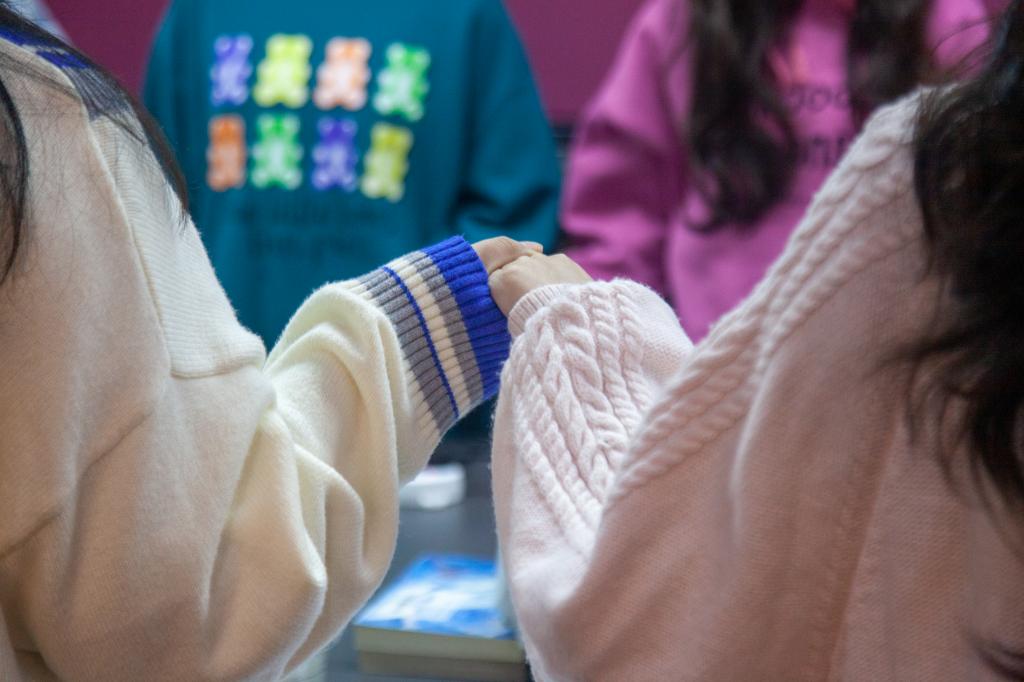 在主持人简春同学的引领下,同学们分别参与了“呼唤朋友”、“互换朋友”、“千变万画”、“家乡纸影”以及“爱传递”五个活动项目。在进行“呼唤朋友”和“互换朋友”项目时,同学们积极性非常高,一次次握手,一句句“你好”,似旧友重逢,似新友初识,足以道尽这接近一学年的相知相伴,也让同学们重温了初入班级时的热情,那份美好在欢声笑语中将活动推向了高潮。