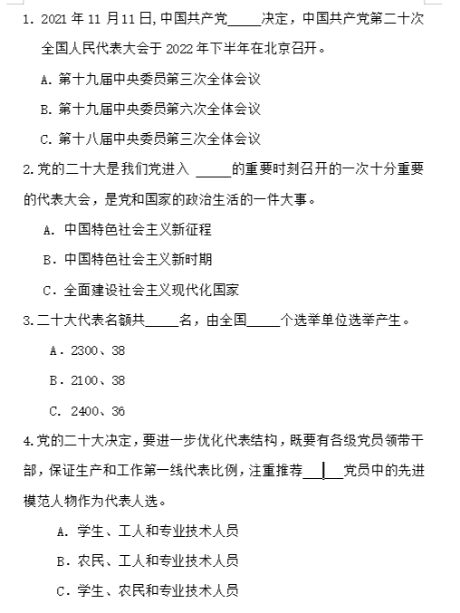 中国共产党第二十届全国代表大会将会在2022年下半年召开,作为党的接班人,必须熟悉并牢记党的精神、初心,对党也有一定的了解。开展关于党知识的相关竞赛,让各团干部及青马工程学员们学习进一步学习和巩固了相关党的理论知识,更进一步增强了其对党的归属感和认同感。本次活动针对中国共产党第二十届全国代表大会设置了十道相关题目,以此检验团干部和青马工程全体学员的相关知识储备。