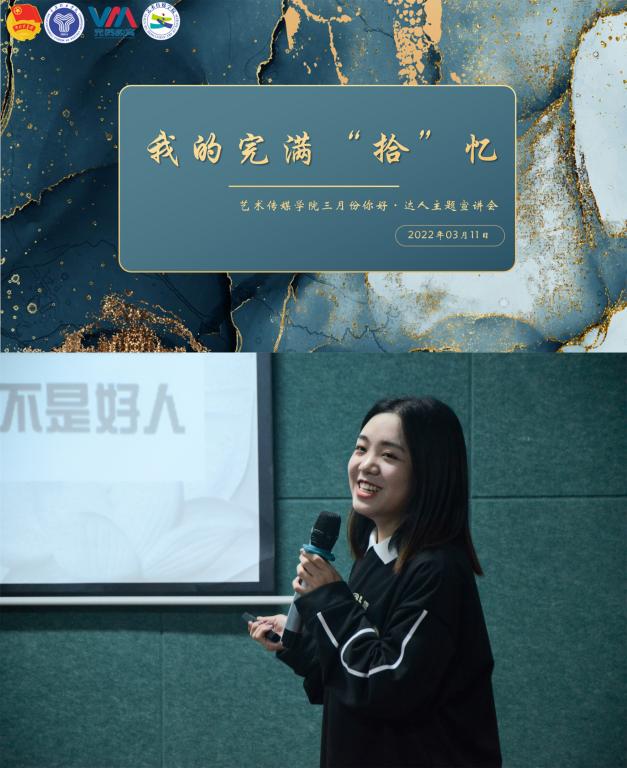 艺术传媒学院于2022年03月11日中午12:30在爱莲学院多功能影音室举行了《我的完满“拾”忆》暨艺术传媒学院三月你好·达人主题宣讲会,本次宣讲会特邀第九季“完满达人”——社团达人邹雅兰,她从成长故事、目标培养、自我提升三个层面对各位同学进行分享。