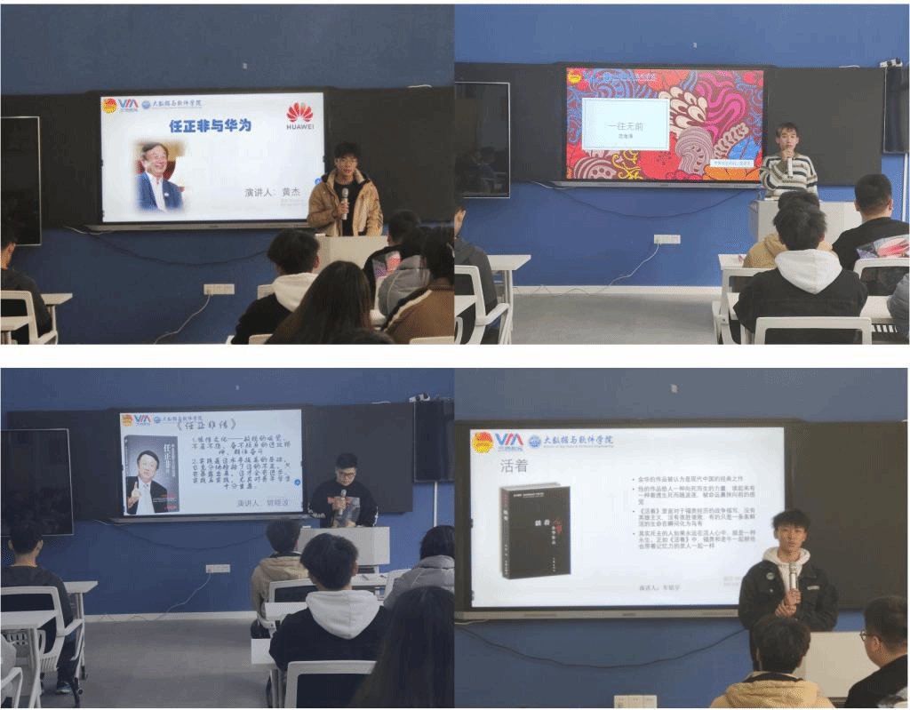 寒假期间,干事们除了参与完满教育各项工作外,还进行了大咖阅读。交流会上,组织部、办公室、宣调(调研)部、学习部、送“我”回家·失物招领志愿服务专项支队、甲骨文艺术团分别有1名干事代表进行了大咖书籍分享,如《任正非与华为》《彭蕾传》《一往无前》,其他代表也分享了自己在寒假阅读的经典书目,如《活着》《人间失格》等。同学们纷纷表示,阅读让人冷静思考,而大咖阅读的推进让人意识到成功人士的认识与思考,也建立了良好的校园文化,要带头阅读,倡导建设良好的校风,营造浓厚的书香校园。