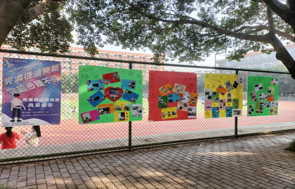 冬日的暖阳照射在一张张精美绝伦的风采展板上,为各具特色的风采展板增添别样的色彩。一张张内容丰富多彩的照片展览在B 区足球场的主干道上,为大家呈现出精彩的完超活动过程。别具一格的展板,吸引着路过同学们的眼球,纷纷驻足欣赏,品味支部活动的精彩,感悟别具声色的完超精彩与魅力。这一块块展板,汇聚了支部同学们的心血,增强了支部凝聚力。看到这一块块精心制作的展板,不由得感慨完超带给了大家与众不同的体验与美好回忆。未来的航程里,大家又会有怎样的不一样风采。