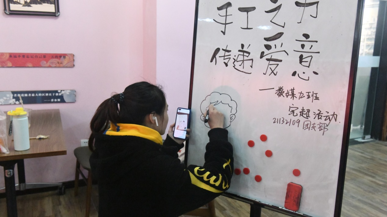 为提高我们班级的凝聚力与活动力,在暖暖的冬日给爱的人送去祝福和心意,在学习之余也能放松自己的身心。我们为此筹备了许久,也尽展现出我们班级的活力与对手工的设计与了解,增强小组协作能力。12月8日下午14点到16:30,在班级团支书吴辰雨涵与各班委的带领下我们在爱莲书院音乐咖啡厅举办了此次“手工之力,传递爱意”的班级完超活动。