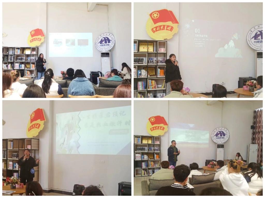 为进一步助推支部文化建设, 展示支部独特风采,外国语学院团总支于2021年12月22日12:00,在天渠110阅览室开展 2021-2022 学年“完满征途换新,完超步履不停”完满超级团支部学院风采展示。特邀外国语学院团总支书记吕戈老师、校园社团活动板块指导老师兰鹰老师、竞技体育板块指导老师阳果老师、艺术修养与实践板块指导老师屠建丽老师及外国语学院三届三任主席团成员,作为评委出席此次活动。