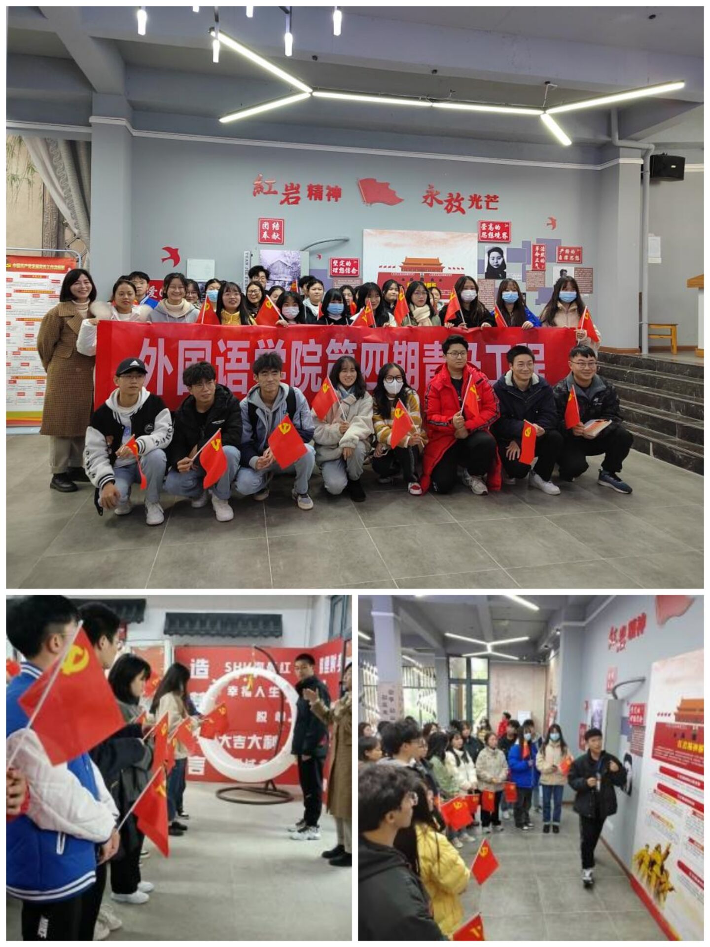 2021年正值建党100周年。为重温革命历史、缅怀革命先烈、传承红色基因,涵养家国情怀。外国语学院联合青马工程、北山书院、思政教学部于2021年12月15日下午,在北山书院红岩馆开展“传承红色基因,重温革命历程”青马工程实践活动。 特邀讲师陈静老师组织青马工程学员们分为多个队伍进行集合讲解,开场介绍并讲解活动流程。同学们拿着分发的小红旗进入北山书院红岩馆踏入红岩之旅。红岩精神在任何时候都发挥着重要作用。红色基因代代相传,如今,红岩精神依旧历久弥新、深入人心,我们更应将其传承和弘扬下去。