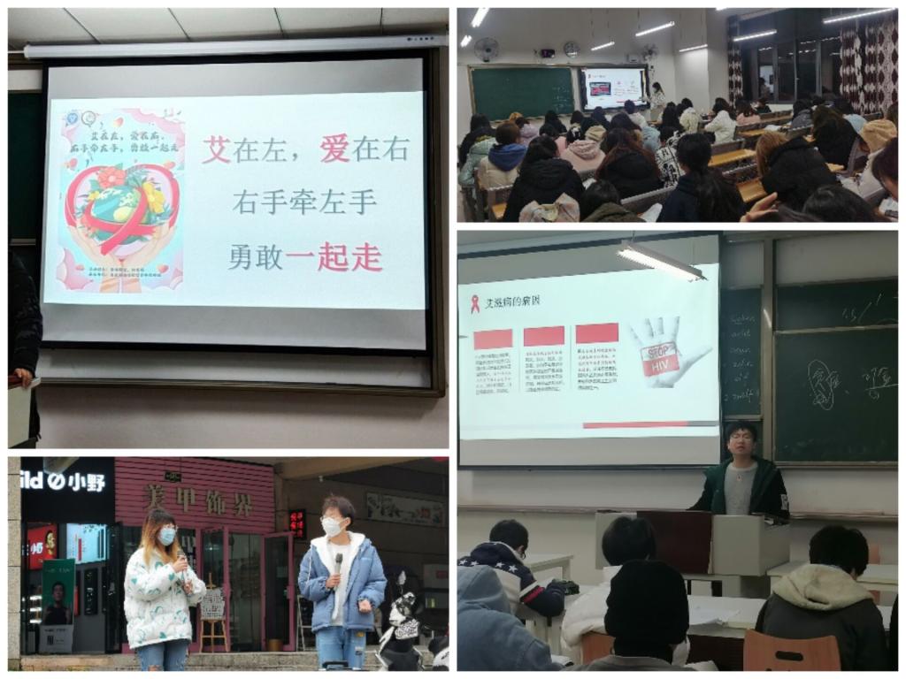 12月1日是第34个“世界艾滋病日”,今年我国宣传活动主题为“生命至上 终结艾滋 健康平等”(英文主题为“End inequalities. End AIDS. End pandemics.”)。12月10日—12月13日,完骨中阶四班于天渠书院、六教和缤果城下举行以“艾在左,爱在右,右手牵左手,勇敢一起走”为主题的完超活动。利用早自习的时间进入外国语学院和中德应用技术学院的班级进行艾滋病知识的宣讲。两院学子了解到艾滋病的相关知识和如何防范艾滋病。12日中午,中阶四班的同学来到缤果城,展开3分钟路演活动。在他们的讲述下,路人纷纷驻足聆听,同时让他们对艾滋病患者的疑虑降低,试着去关爱这类群体,感受到我们的对他们的爱。
