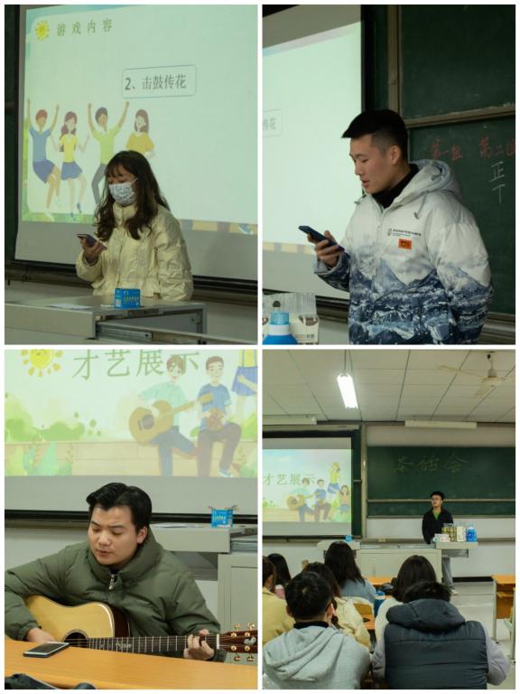 “滴水不成海,独木不成林”,一滴水只有放进大海里才永远不会干涸,一个人只有当他融入集体才最有力量,团结而又奉献!这是第二个环节,做游戏,游戏分别有:看字读颜色、你划我猜、击鼓传花。以五人一组,各个小组参与游戏其中,每个组通个参与游戏得积分,最后按排名得奖品。游戏内容及其奖品激发了同学们的兴趣,大家都纷纷加入其中,各个小组成员齐心协力,团结互助完成了一个接一个游戏项目,在活动中有欢笑,有呐喊,有鼓励也有赞扬,同学们在游戏中显现出自我风采,有的足智多谋,有的聪明伶俐。从游戏中也激发了大家善于思考的能力,同学们的一举一动,一言一行,无不彰显着青春与活力;通过游戏环节,焕发出同学们在游戏中浓厚的班级凝聚力与团结力。因为有大家伙的游戏参与,让我们班的茶话会活动更进一步充满生机与活力!